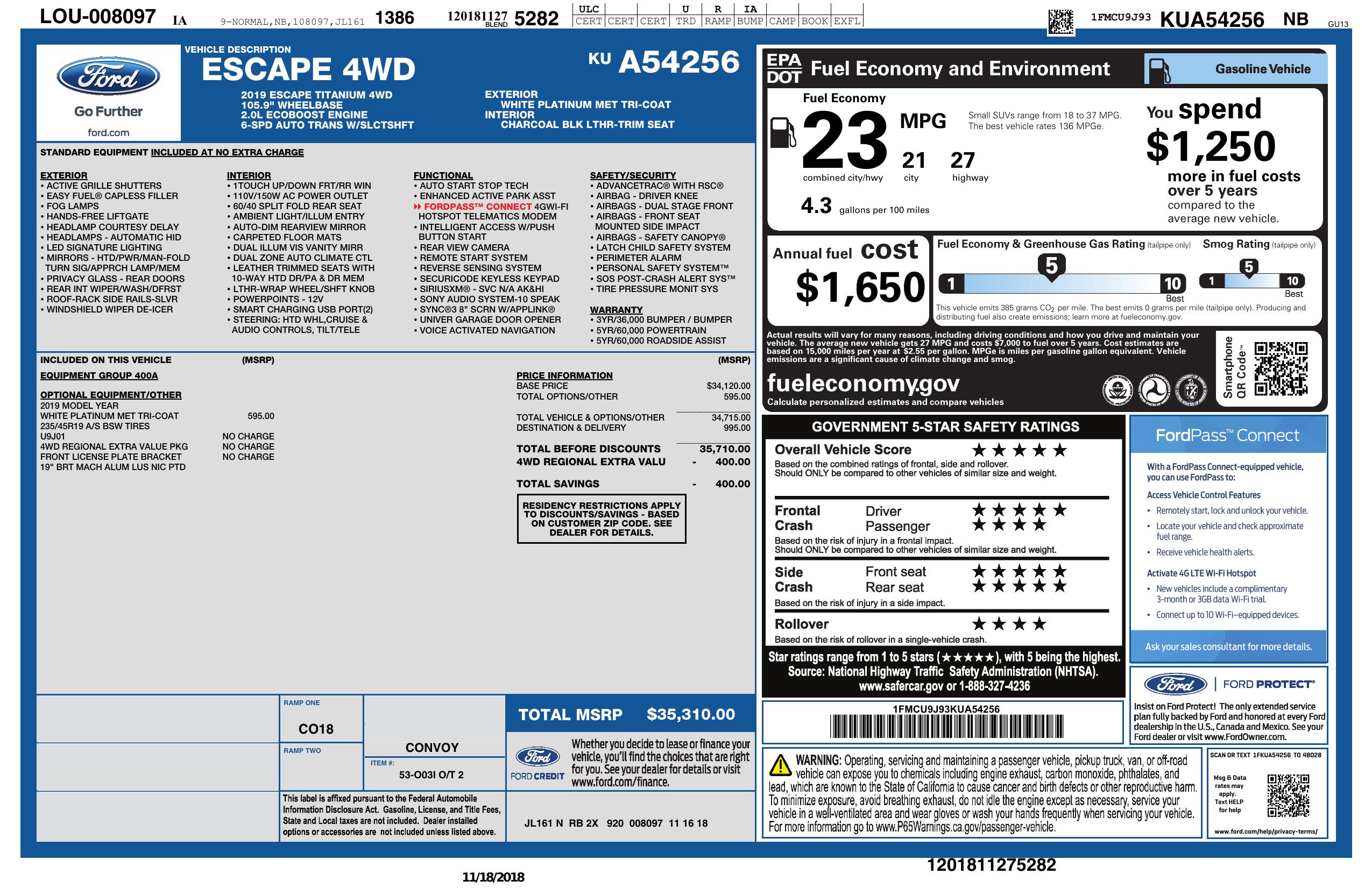 2019 Ford Escape Titanium 4WD